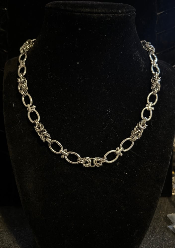 16 inch in length Chain design wraps all the way around. If you need an extension please add 2 INCH EXTENSION CHAIN to your order!