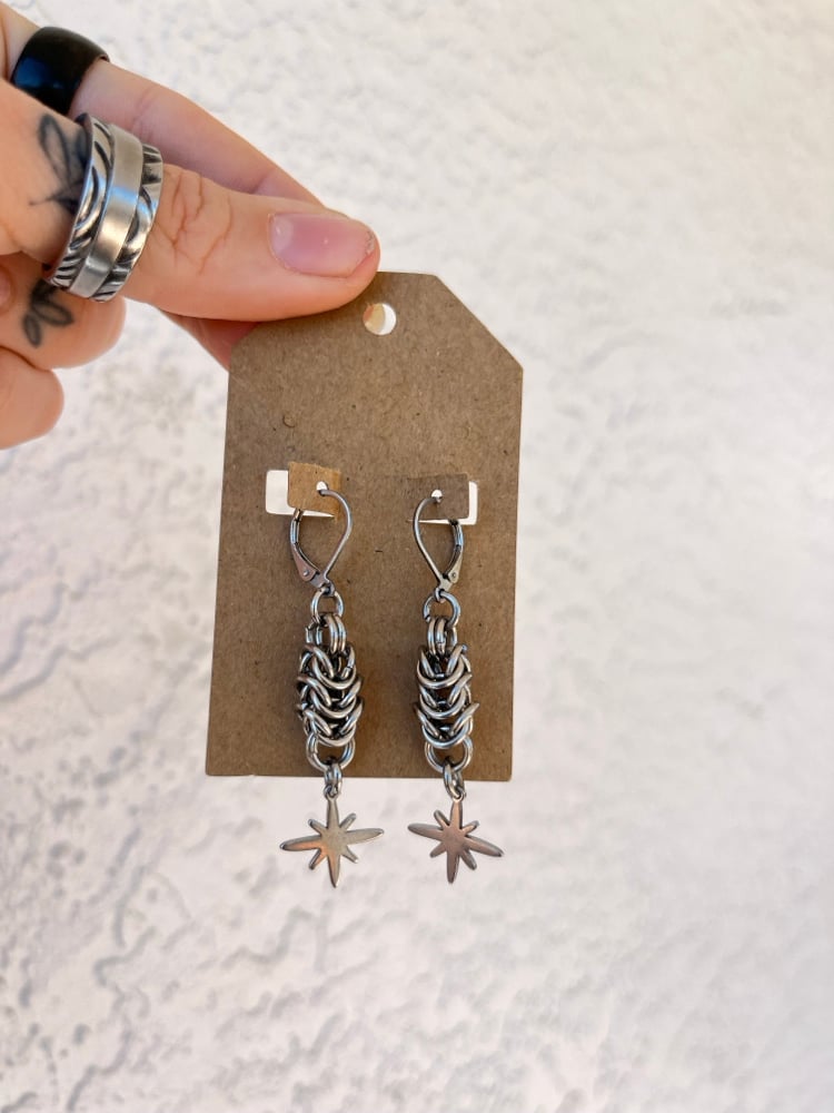Silver base: Stainless steel findings. Stainless steel lever back clasps.