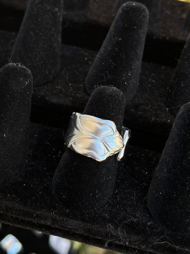 All rings are repurposed from thrifted silverware. Most are found in singles or rare doubles (not full sets).