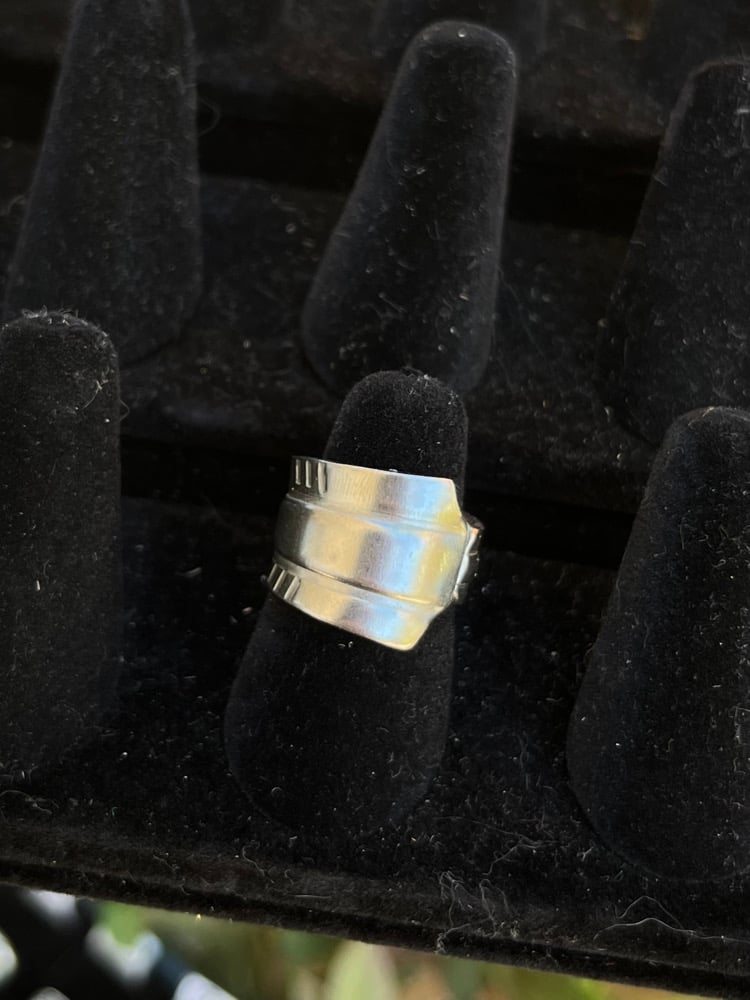 All rings are repurposed from thrifted silverware. Most are found in singles or rare doubles (not full sets).