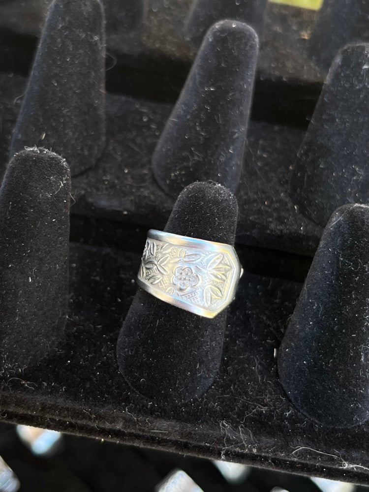 All rings are repurposed from thrifted silverware. Most are found in singles or rare doubles (not full sets).