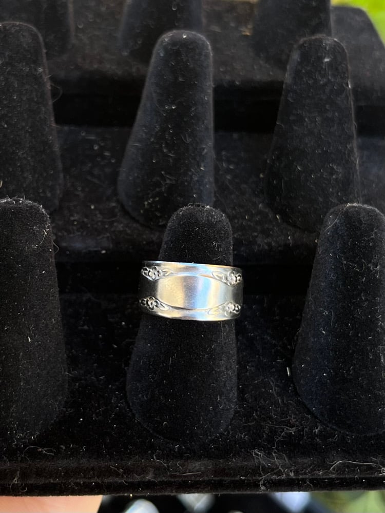 All rings are repurposed from thrifted silverware. Most are found in singles or rare doubles (not full sets).